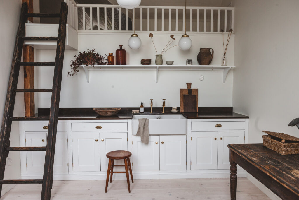 Ett rustikt kök i massivt trä, byggt för att hålla och älskat för sina detaljer. Här möts funktion, material och känsla i en lugn helhet.