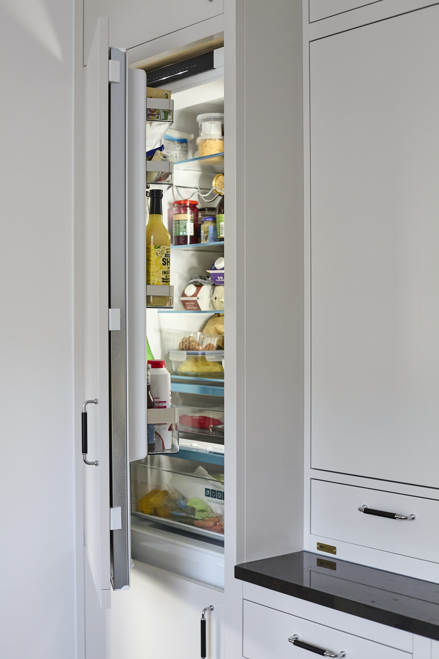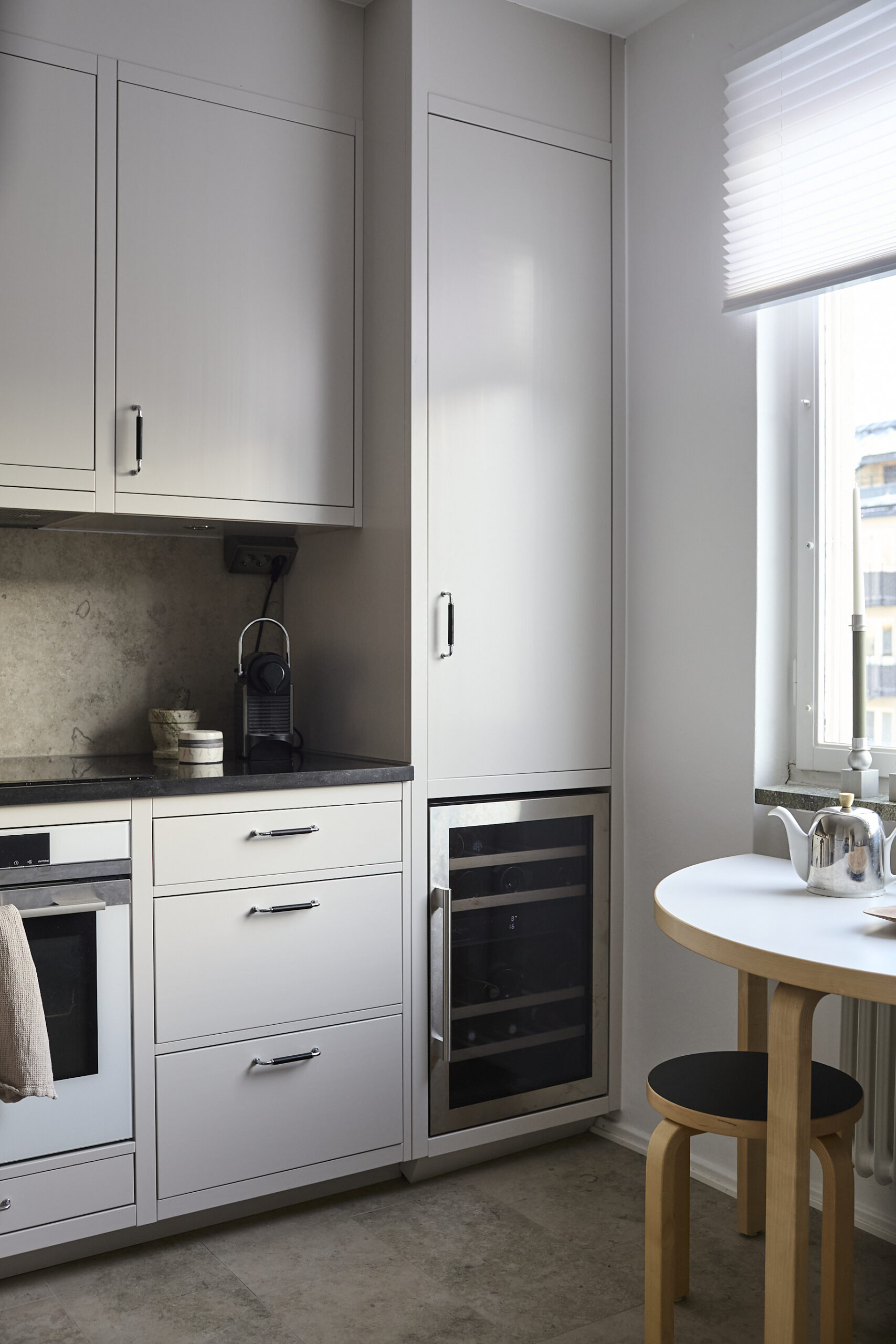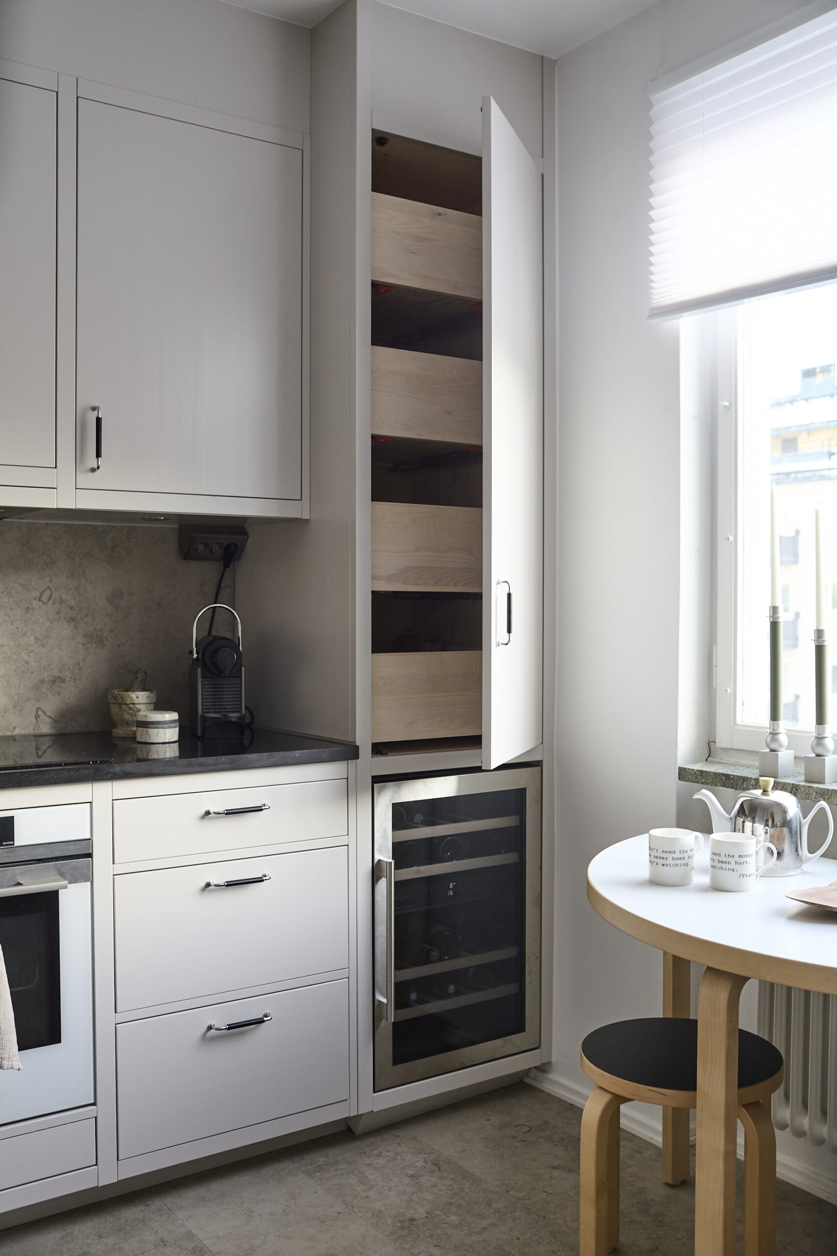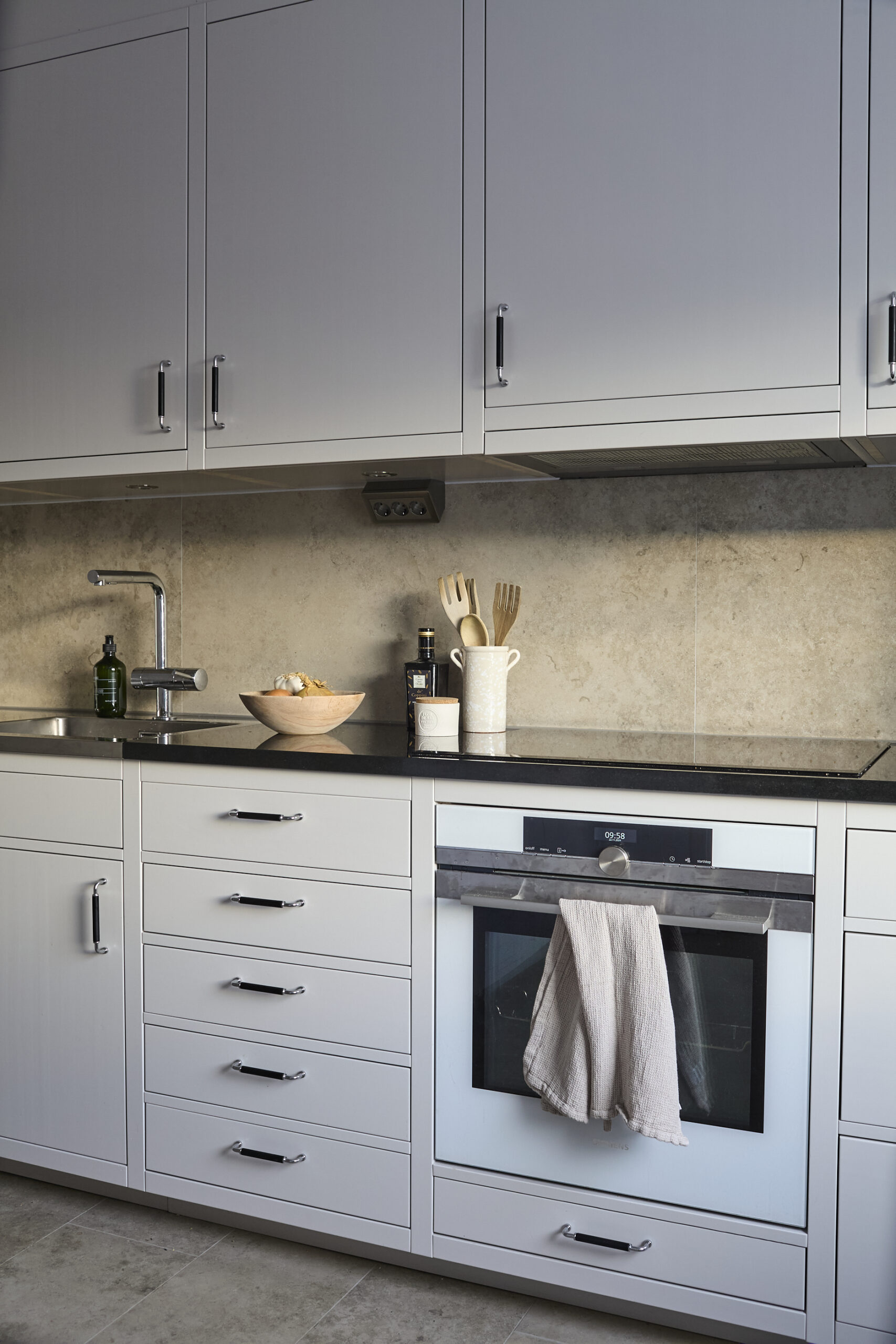 Karin’s kitchen combines clean design with genuine craftsmanship. The smooth solid wood doors and the longitudinal plinth create a harmonious and timeless expression.